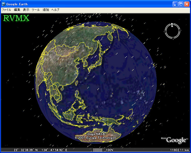 Google Earthで表示(2008年版以降の機能)。