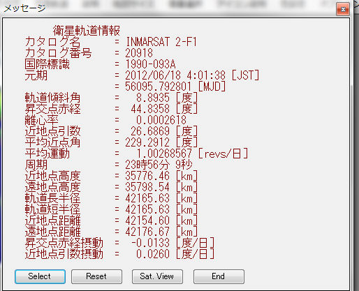 注1:軌道要素表示でSat. ViewボタンをON 2013年版より追加されたボタンで、地球局より衛星方向の目視シュミレーション