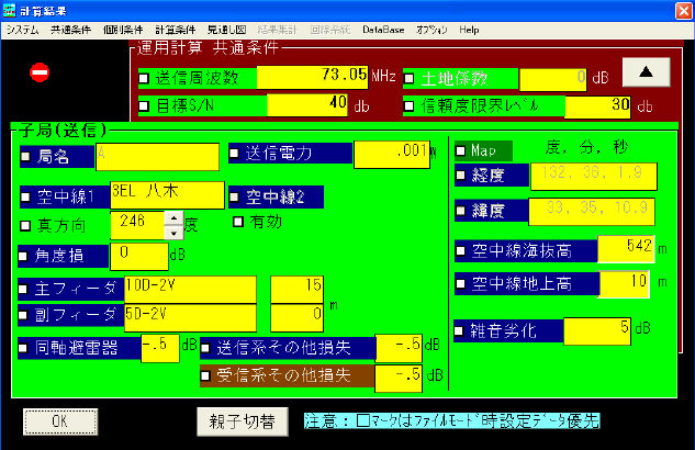 ここで、実際の運用条件を設定して下さい(例えば実験周波数69MHzですが、運用は70MHz等)